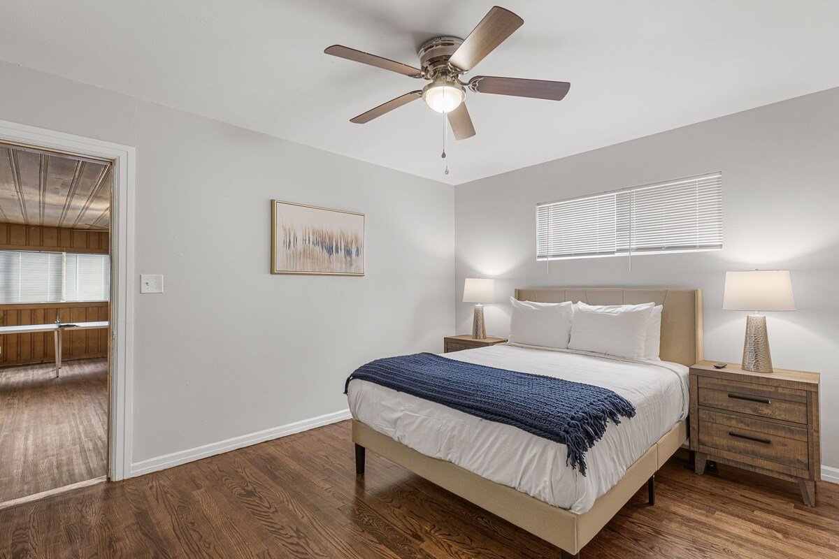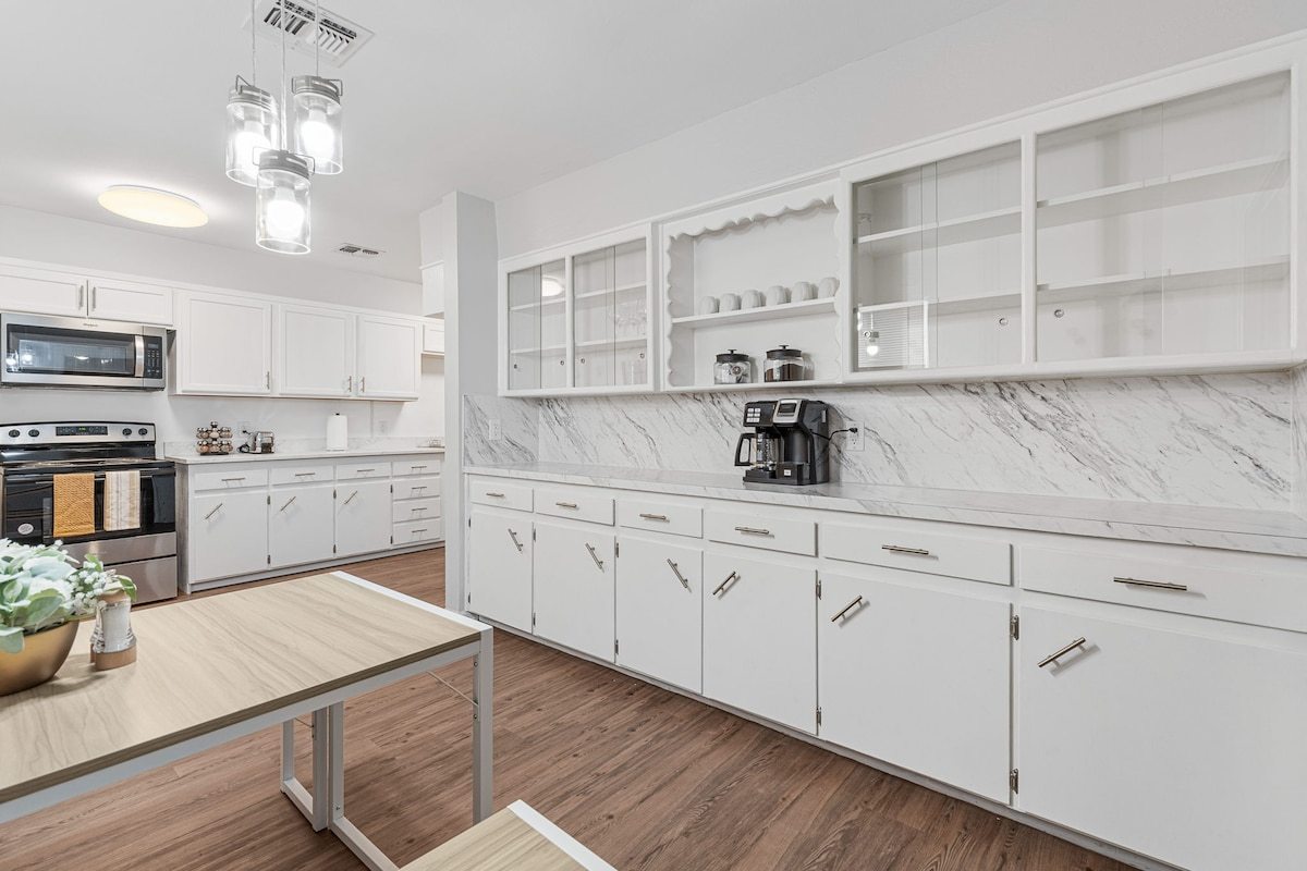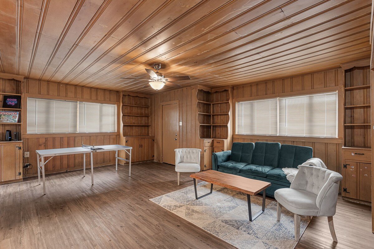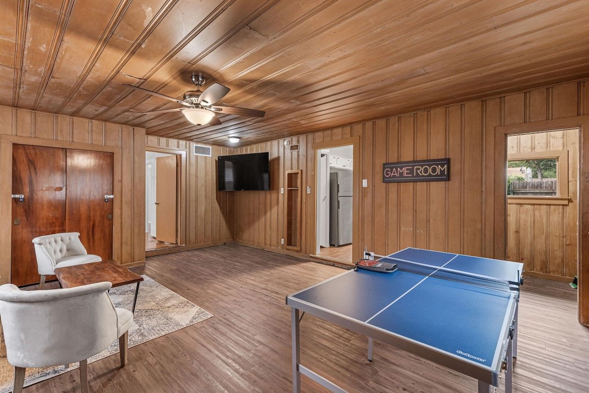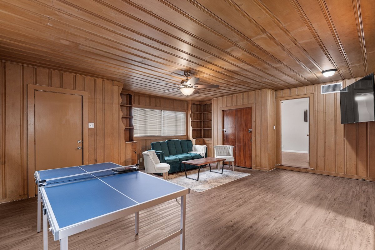 This remodeled house has a TV in every room, a Game Room with a pull out couch with a ping pong table where the whole group can come together. Everything inside the house is brand new and ready for your group to enjoy.