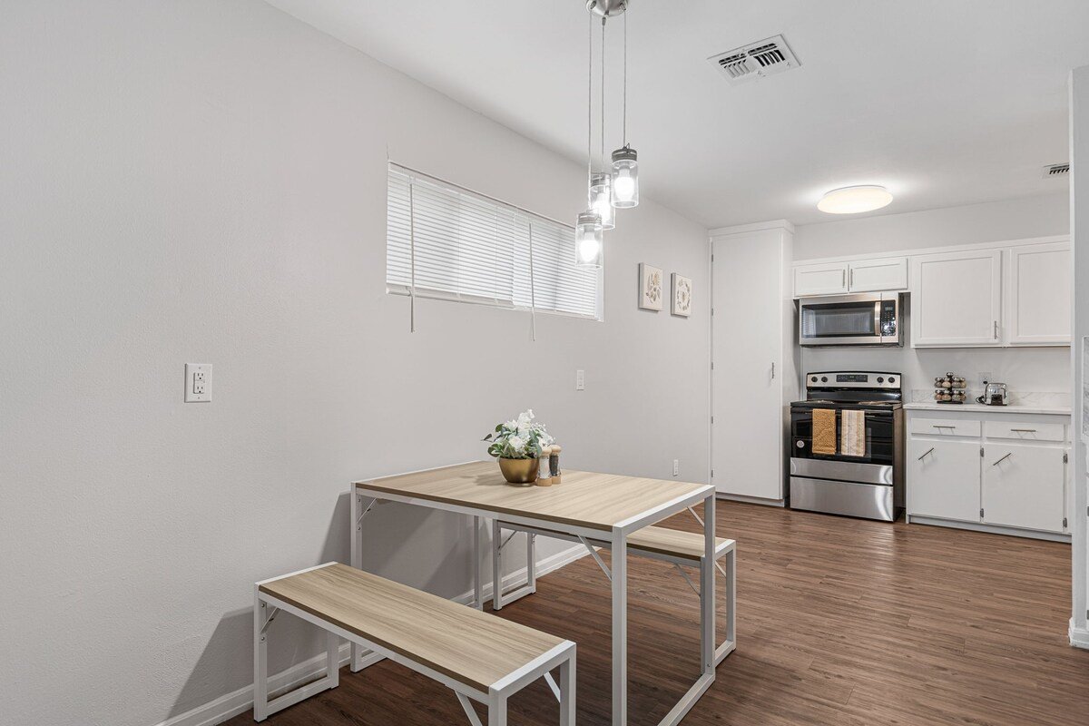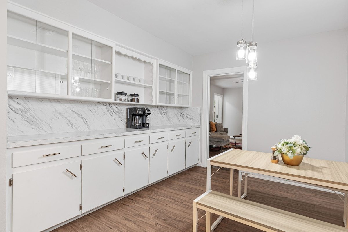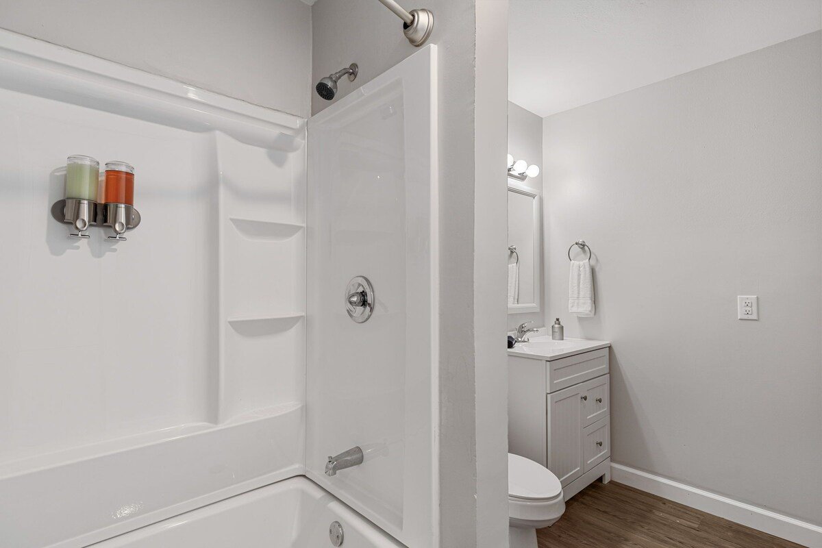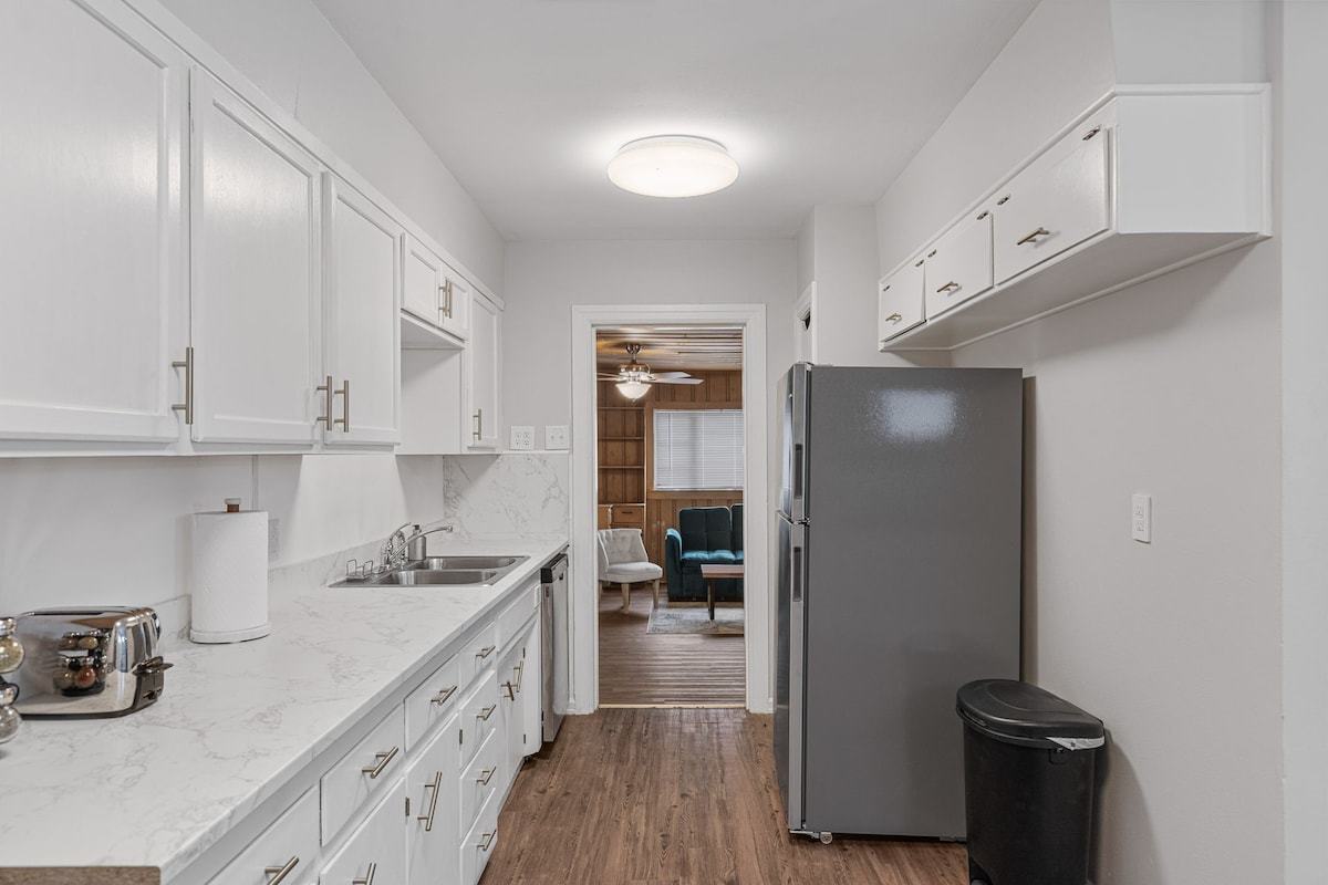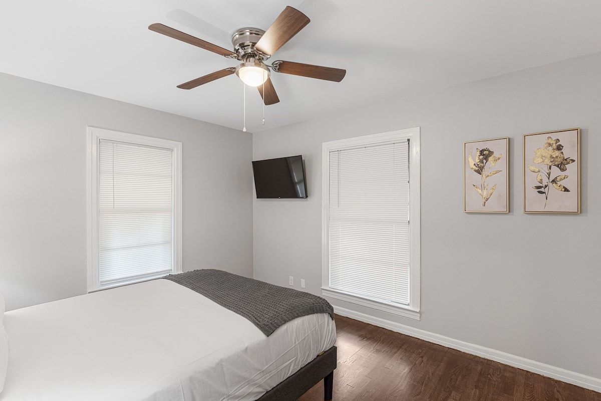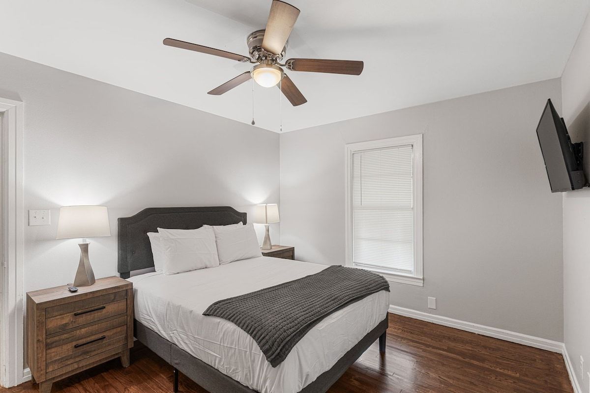 This remodeled house has a TV in every room, a Game Room with a pull out couch with a ping pong table where the whole group can come together. Everything inside the house is brand new and ready for your group to enjoy.