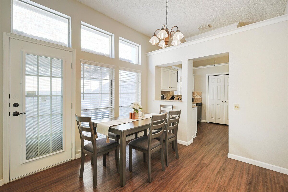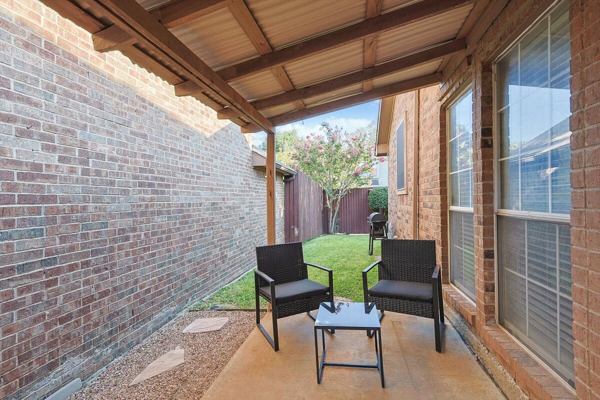 Enjoy this beautiful 3-bedroom home, with patio and BBW Grill. Just 12 mins away from DFW airport, 15 mins away from Lake Lewisville. Enjoy your stay with fully equipped kitchen and dining area.